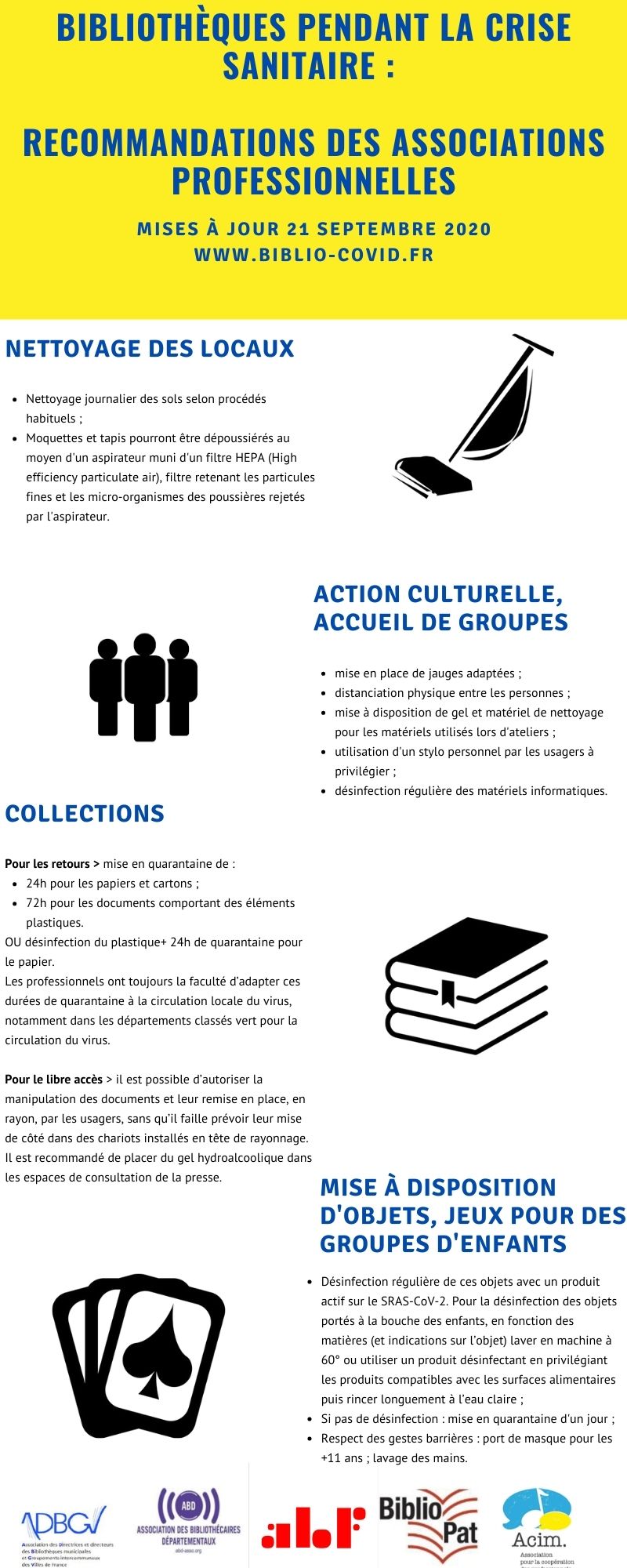 Bibliothèques et COVID-19 : rappel de la loi et présentation des préconisations émises par les associations professionnelles 21 septembre 2020 [communiqué interassociatif]
