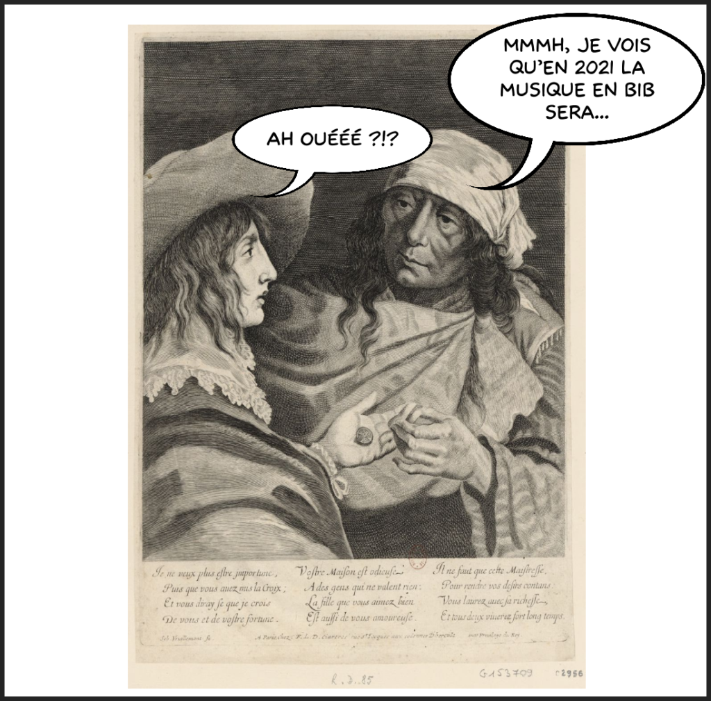 Avec l’appli BDNF, créez un visuel avec pour thème « Pour vous, c’est quoi la musique en bibliothèque en 2021 ? »