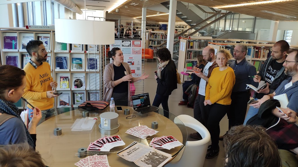 L’atelier était complété par une poster session présentée par Raphaëlle Bats, et Alix Ducros, pour le groupe de recherche PLACED : « Comment faciliter les liens entre la programmation autour de la musique et les collections de musique, collections physiques ou numériques, en termes d’accès aux savoirs pour les publics. »