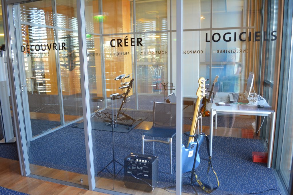 La pratique musicale amateur y est aussi encouragée par le prêt d’instruments de musique, initié en 2015, et la création de la Music Box en 2017. Il est donc possible de jouer sur place (batterie, basse et guitare électrique, station MAO, pianos) et d’emprunter une quarantaine d’instruments : guitares (classiques, folk, électriques, 3/4), basses, ukulélés, banjo, cajon, claviers.