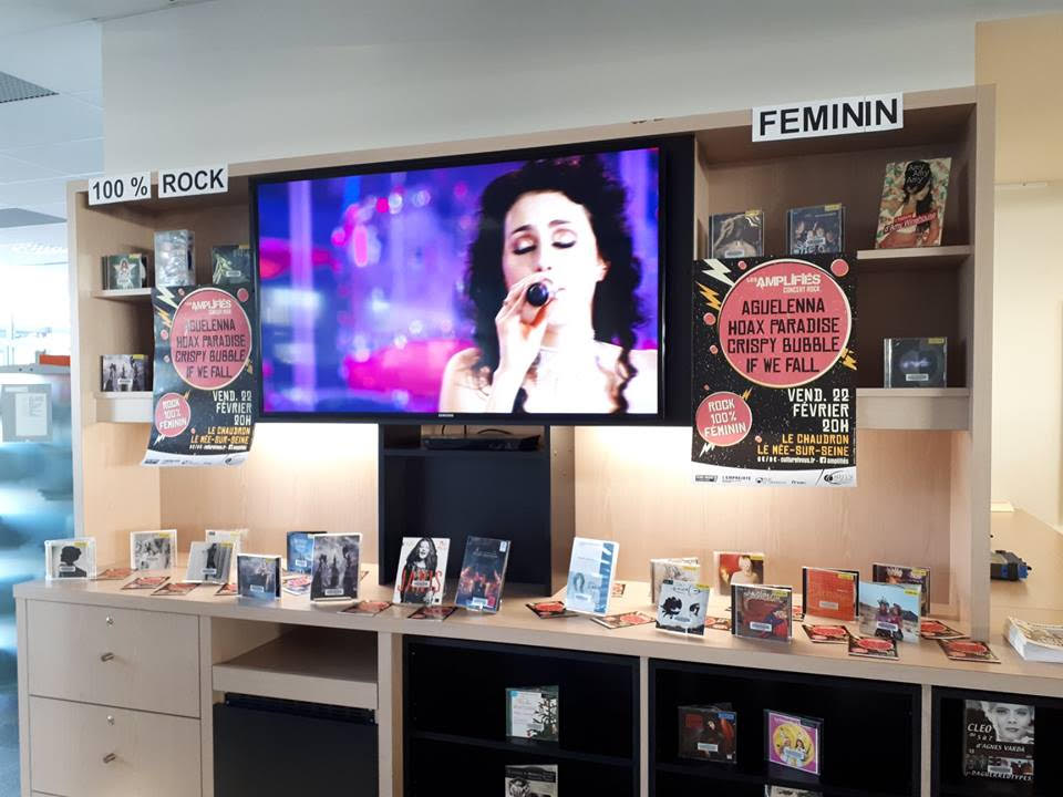 Valorisation dans l’espace « Studio » de la médiathèque Astrolabe sur la thématique sur le rock féminin en soutien au concert du dispositif « Les amplifiés » – Février 2019