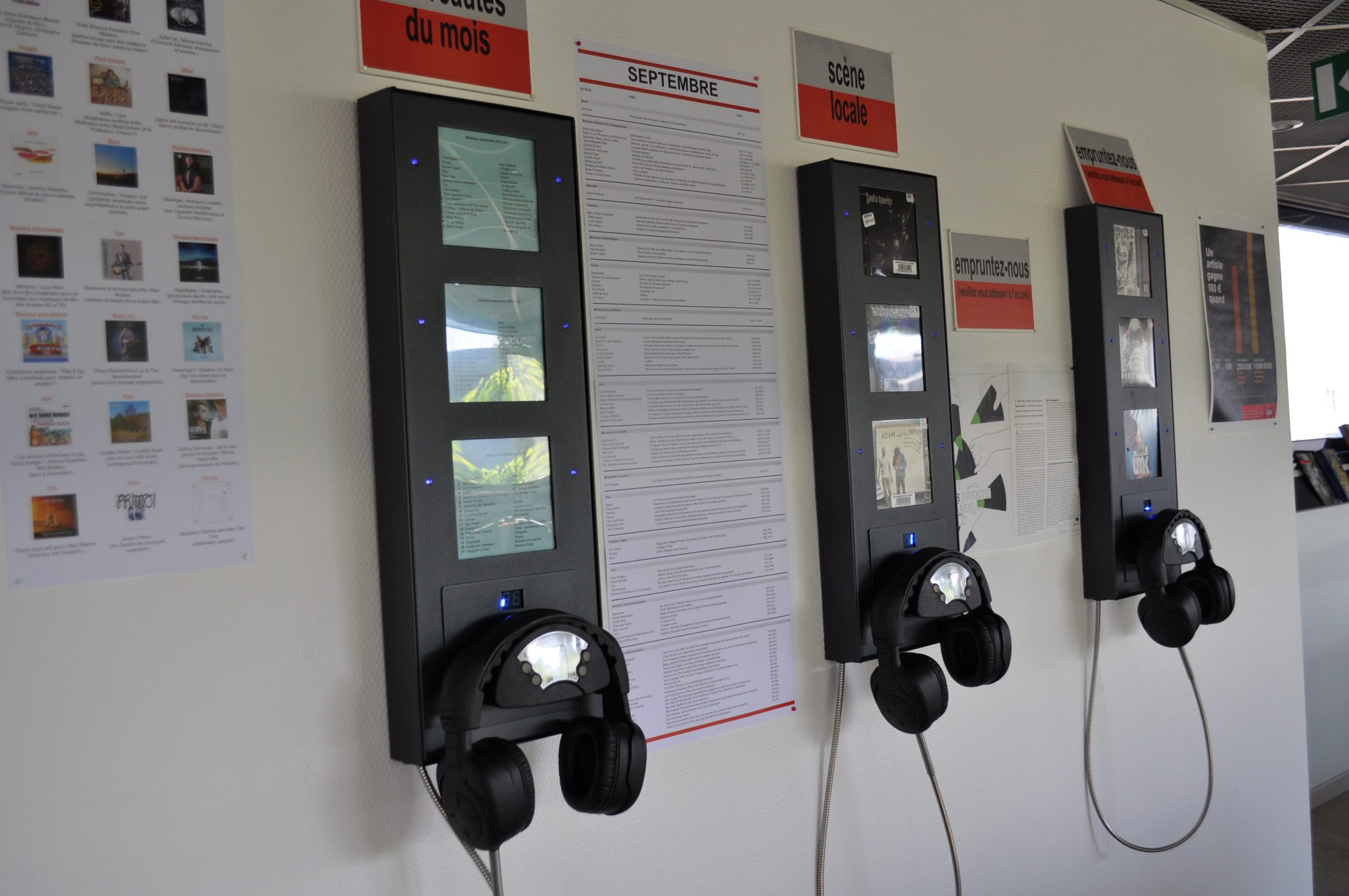 – 8 lecteurs MP3 chargés de musiques libres de droits : 4 en prêt (Soul-funk, Musiques électroniques, Pop-rock, Jazz) et 4 en écoute sur place (Lounge cool, Musiques du monde, Rock métal, Surprise)