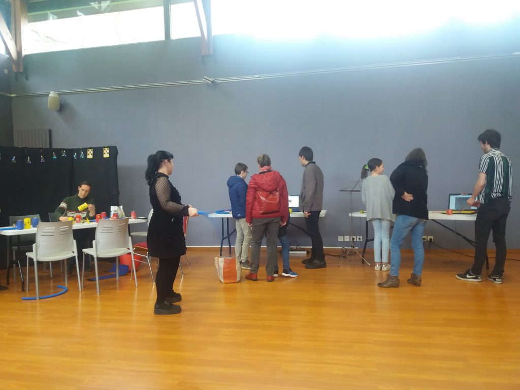 L’enjeu de cette animation qui se déroulait sur deux temps, un atelier le matin réservé aux enfants (et aux parents) sur inscription et un parcours libre l’après-midi, était de montrer aux débutants comme aux confirmés différentes manières de produire du son et de le traiter pour en obtenir d’autres, en allant du concret vers le numérique.