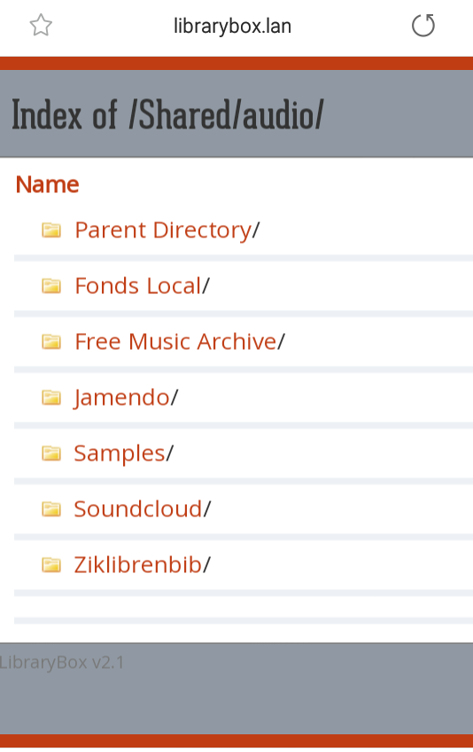 Voici une capture du contenu du dossier musique de notre Bibliobox (TP-link MR3020) :