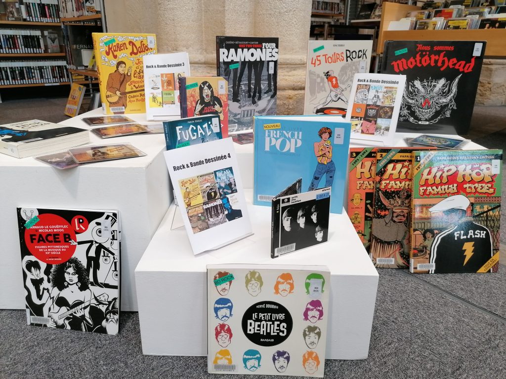 Voilà une bonne occasion de rapprocher les collections BD et CD/vinyles en bibliothèque, d’autant que 2020 est l’année de la BD. Certaines médiathèques ont consacrés des fonds spécifiques, soit temporairement soit dans la durée, et des présentations afin de faire connaître ces collections en parallèle de la musique.