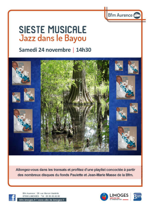 Nous avons commencé à proposer des siestes musicales à l’occasion du Festival « Psyché Déklik » qui a eu lieu en 2016 dans les centres culturels de Limoges et à la Bfm. Notre première sieste qui fut donc « psychédélique » a remporté un franc succès. Depuis nous avons programmé une sieste « D’île en île » en mars 2017 sur le thème des musiques et instruments des îles du monde entier, une sieste « Ornithologique » en avril 2018 sur le thème des oiseaux dans la musique classique à l’occasion de l’exposition Ornithos d’Emilie Vast, et une sieste « Dans le bayou » le 24 novembre dernier. Cette dernière s’inscrivait dans le cadre des animations qui ont lieu jusqu’à la fin décembre autour du jazz à Limoges. Intitulée « Hot Vienne », cette manifestation s’appuie sur la personnalité de Jean-Marie Masse, musicien et promoteur vigoureux du jazz depuis la fin des années 1940, fondateur du Hot Club de Limoges, dont la Ville a reçu par voie testamentaire en février 2016 les archives personnelles constituées de plus de 20 000 pièces de grande valeur. La Bfm est chargée de la conservation et de la valorisation de ce fonds de CD, 78t, 33t et 45t, photos, lettres, films, archives radiophoniques… C’est donc tout naturellement que nous avons décidé de piocher dans ces vinyles quelques pépites jazz, blues, rhythm and blues et zydeco pour concocter une sieste à la sauce New Orleans.